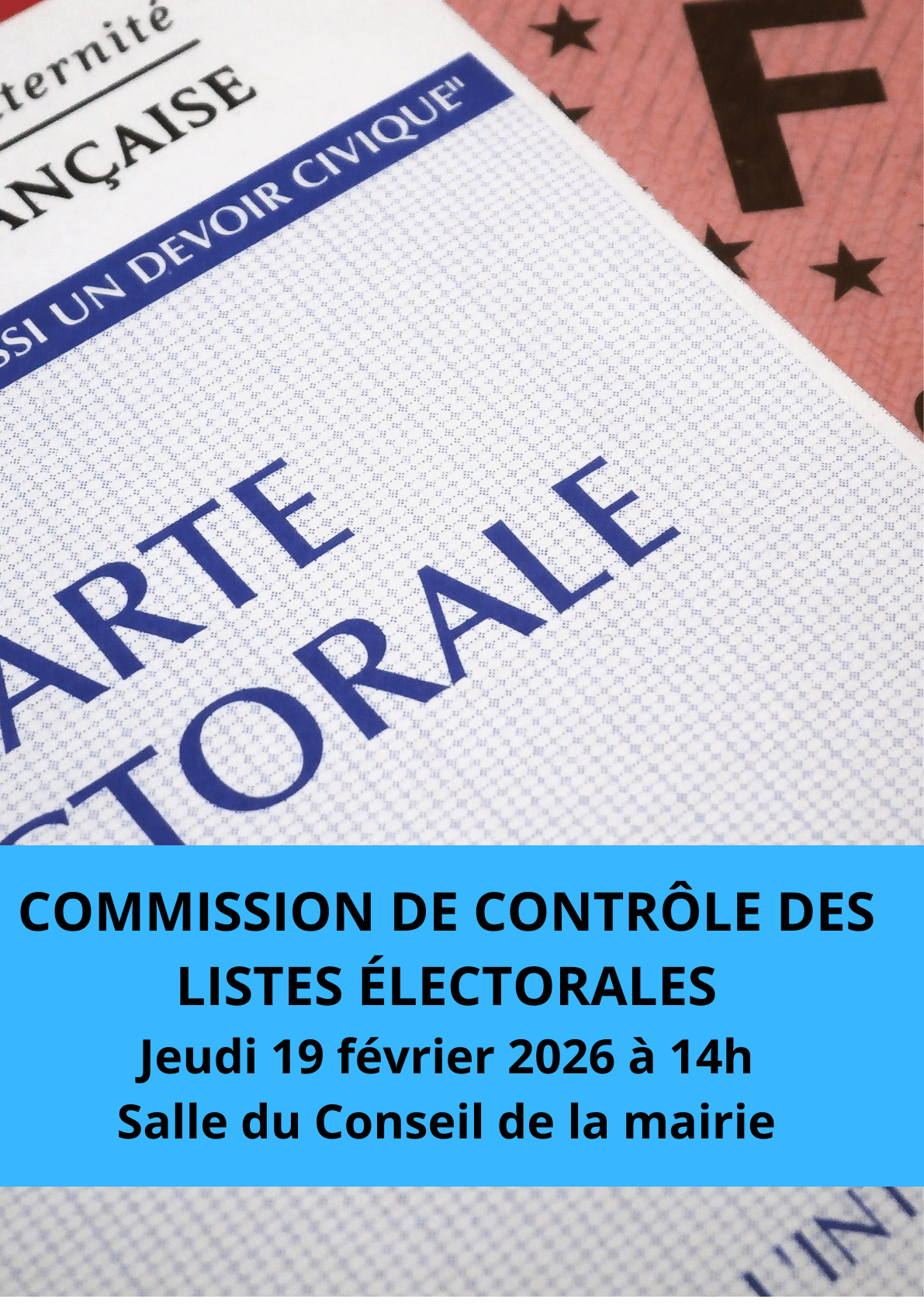 La prochaine Commission de contrôle des listes électorales d’ALLEMOND, se réunira le jeudi 19 février 2026 à 14h00 dans la Salle du Conseil située au rez-de-chaussée de la Mairie.