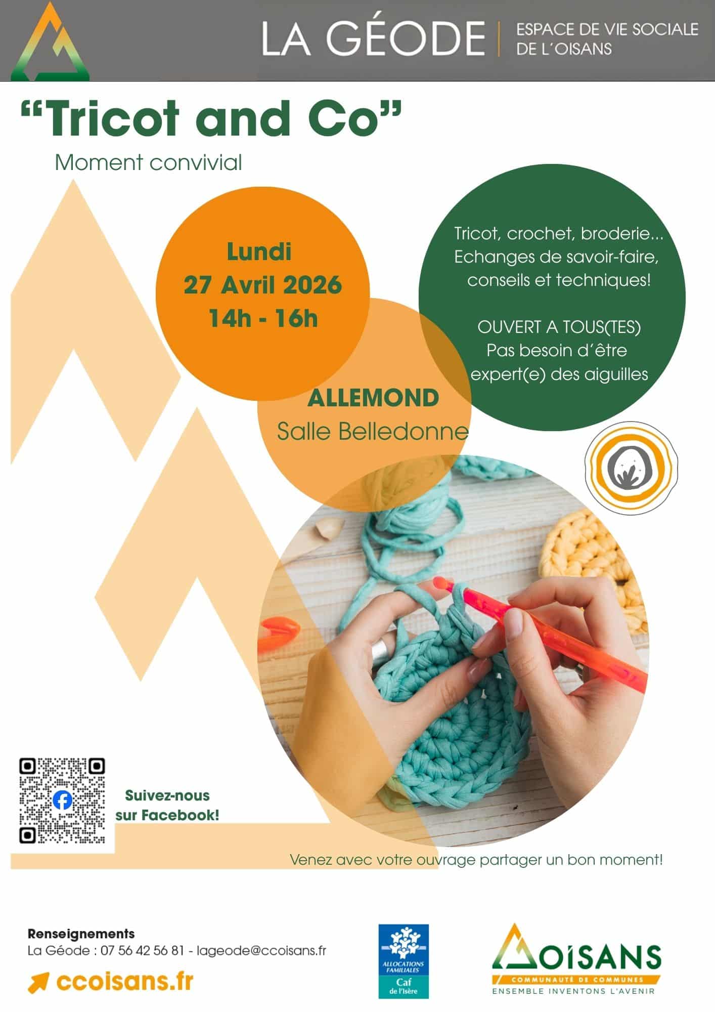 Lundi 27 avril 2026 de 14h à 16h, venez partager un moment créatif et chaleureux à la Salle Belledonne à Allemond !